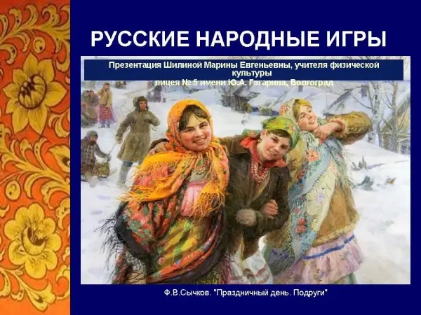 На современном этапе развития школы ученики имеют слабое представление о русских народных играх, забавах, развлечениях, составляющих основу национальной культуры России и физической подготовки их предков. Для преодоления этого недостатка в системе физкультурного образования авторы включили в учебную программу раздел "Русские подвижные игры". Практический материал предлагается в виде разделов программы с видовой дифференциацией применяемых русских народных игр (по блокам).