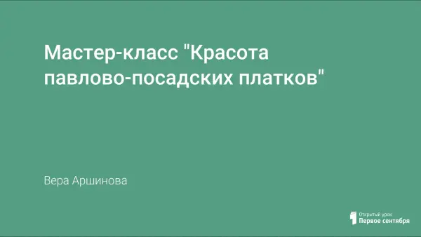 Мастер-класс проводится для педагогов дополнительного образования объединений художественно-эстетического направления, учителей изобразительного искусства и технологии. Участники знакомятся с производством павловопосадских платков, овладевают приемами росписи по ситцу, а оформление кабинета и богатый наглядный материал погружают в этот вид декоративно-прикладного искусства.