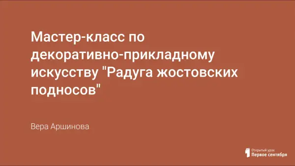 Мастер-класс «Радуга жостовских подносов» проводится для педагогов дополнительного образования объединений художественно-эстетического направления, учителей изобразительного искусства и технологии. Материал содержит план проведения мастер-класса, сценарий, фотографии, пример оформления кабинета. Участники мастер-класса знакомятся с историей и видами жостовской росписи, техникой изготовления жостовских подносов овладевают приемами жостовской росписи.