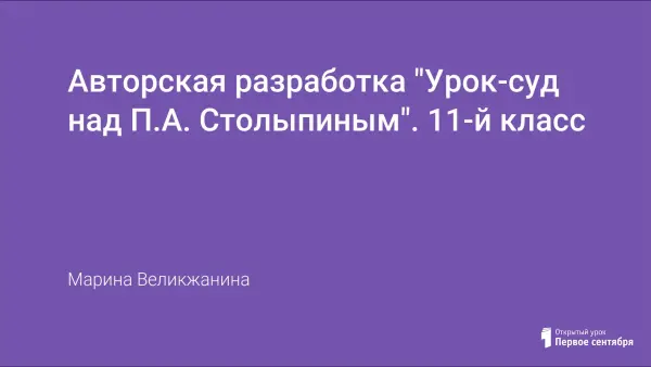 В центре данного урока - рассмотрение деятельности П.А. Столыпина, которая неоднозначно оценивается в исторической науке. Одновременно с процессом закрепления изученного материала ученики знакомятся с основными элементами судебного процесса.