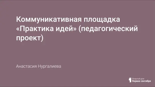 Коммуникативная площадка «Практика идей» – это способ развития сообщества юных исследователей, проектировщиков, созидателей, творческих личностей. Коммуникация стимулирует познавательную активность и созидающую деятельность обучающихся. Основная задача сократического диалога - вывести диалектику познания в продуктивное русло, тем самым, намечая траекторию деятельного развития обучающегося. Создаётся школьная среда, где созидание приравнивается к важному поступку.