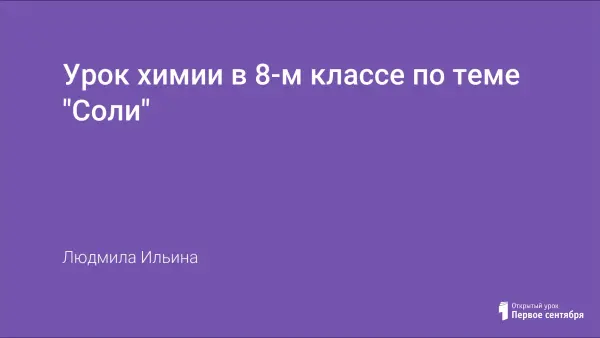 Цель урока: формирование у учащихся представления о солях как производных кислот и оснований; познакомить учащихся с составом и номенклатурой солей, характеристикой отдельных представителей; формирование навыков работы с химическим оборудованием.