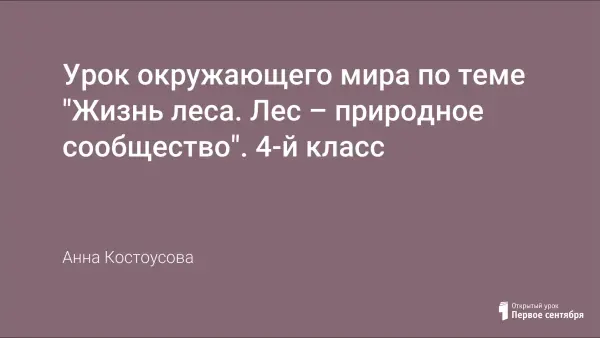 Урок окружающего мира формирует представление учащихся о лесе как о природном сообществе. Знакомит с разнообразием лесных обитателей, ярусами леса, лесной подстилкой, значением грибов.