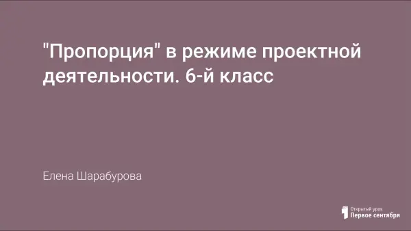 В работе представлен проект урока по изучению пропорции, основанный на проектной деятельности, решении поставленной практической задачи.