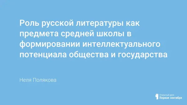 Роль русской литературы как предмета средней школы в формировании интеллектуального потенциала общества и государства