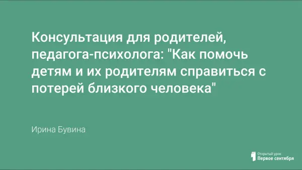 Как помочь ребенку, когда умирает кто-то близкий? Что делать, если вы тоже переживаете боль утраты? Страдают ли дети так же, как и взрослые? Эти вопросы волнуют многих родителей и специалистов и частично раскрываются в данной статье.