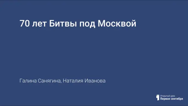 В декабре 2011 года в Московской области широко отмечался юбилей одной из важных дат в истории Великой Отечественной войны. Мероприятие сопровождалось показом презентации с видеоматериалами. Дети 2–3-х классов выучили стихи и песни о славной дате. Была приглашена администрация школы и родители учеников. Представлен сценарий мероприятия.