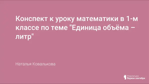 Цель урока: познакомить учащихся с единицей измерения ёмкости – литром; развивать умение сравнивать сосуды по вместимости, упорядочивать сосуды по вместимости, располагая их в заданной последовательности; закреплять знание состава чисел первого десятка; развивать навыки счёта; продолжать работу над задачами изученных видов; воспитывать положительную мотивацию к получению новых знаний.