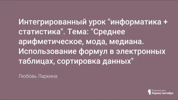 Цель урока: повторение теоретических основ понятий «среднее арифметическое ряда чисел», «моды», «медианы»; закрепление практического навыка вычисления величин; формирование навыка вычисления статических величин в электронных таблицах Excel с формулами и встроенными функциями; создание и форматирование таблицы.
