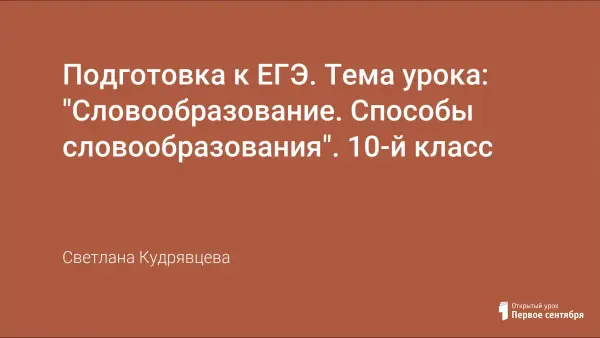 Урок изучает, что такое словообразование и какова его функция, единицы словообразования; закрепляет знания о способах словообразования; решает задания в тестовой форме (по типу ЕГЭ), учит правильно выполнять словообразовательный разбор слова.