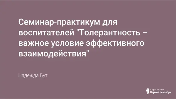 Семинар-практикум для педагогов дошкольного учреждения формирует толерантность в работе с детьми.