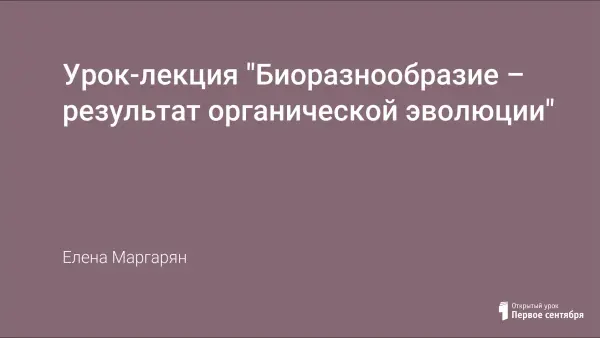 Тема урока показывает, что биоразнообразие – результат органической эволюции. В лекции говорится о том, что разнообразие животного мира менялось в течение геологического времени: периоды нарастания сменялись спадами. Дано представление о роли различных факторов, влияющих на биоразнообразие. Уменьшение биоразнообразия под воздействием человека несоизмеримо по скорости протекания с естественными изменениями. Подчеркнута необходимость изучения таксономического разнообразия животного мира.