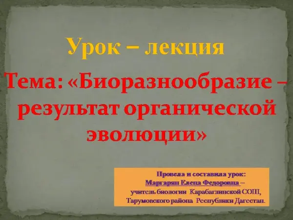 Урок-лекция "Биоразнообразие – результат органической эволюции"