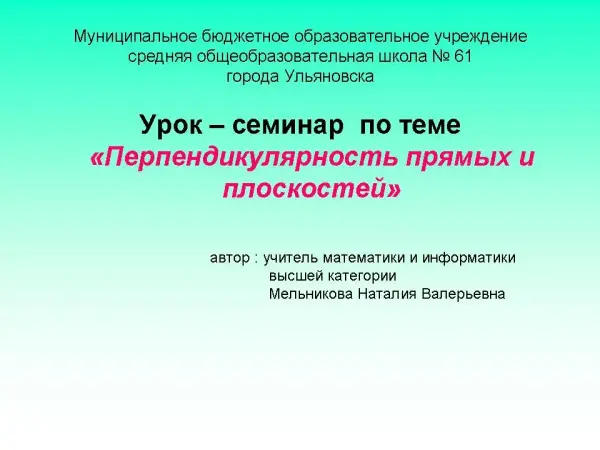 Перпендикулярность прямых и плоскостей. 10-й класс