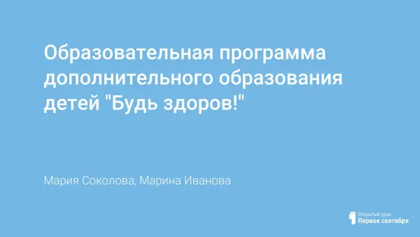 Образовательная программа дополнительного образования детей "Будь здоров!"