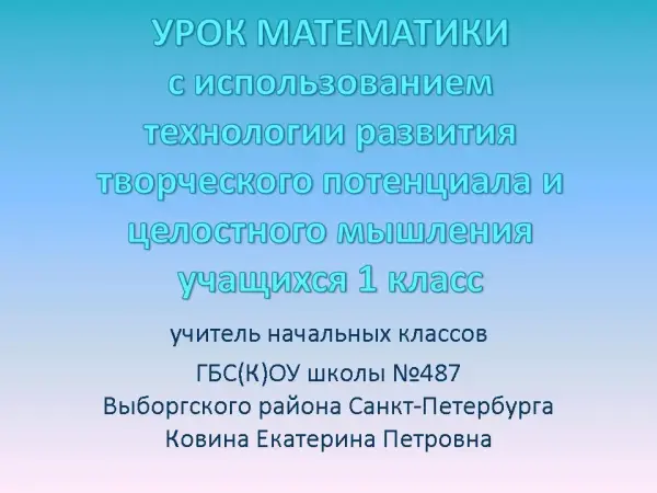 Урок по теме "Состав числа 8" с образовательными технологиями развития творческого потенциала и целостного мышления учащихся