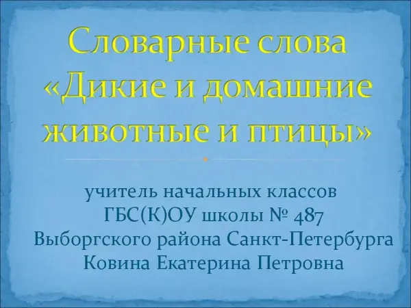 Урок окружающего мира и развития речи для 2-го класса коррекционной школы (VIII-го вида) закрепляет знания учащихся о диких и домашних животных. Материалы урока могут быть использованы для учащихся коррекционных и общеобразовательных школ, а также как дополнительный материал к внеклассной работе.