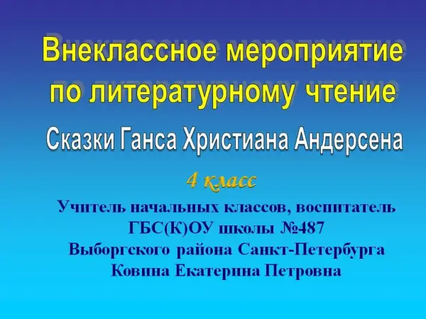Внеклассное мероприятие по литературному чтению для коррекционной школы VIII-го вида. Тема: "Сказки Ганса Христиана Андерсена". 4-й класс