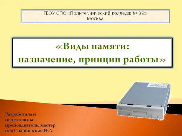 На уроке учащиеся изучают устройство памяти компьютера, виды памяти и их особенности, а также принципы работы.