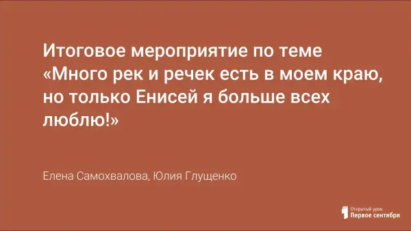 Итоговое мероприятие по теме «Много рек и речек есть в моем краю, но только Енисей я больше всех люблю!»