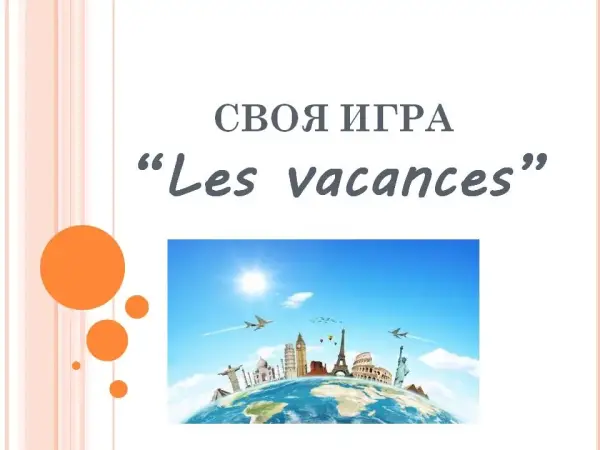 Игра – всего лишь своеобразная оболочка, форма, содержанием которой должно быть учение, овладение видами речевой деятельности. Игру можно использовать на любом этапе обучения. Планируя игру, учитель сначала определяет, какие навыки и умения потребуются учащимся; определяет для себя, чему ребенок должен научиться. Игра по аналогии с телешоу «Своя игра». закрепляет тему «Les vacances».
