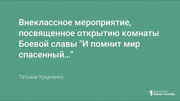 Время все больше отдаляет нас от событий 1941–1945 годов. Мы должны помнить о каждом, кто погиб на войне, хранить и увековечивать все, что может свидетельствовать о том грозном времени. В ходе мероприятия, посвященного открытию комнаты Боевой славы, актуализируются знания учащихся об основных этапах войны, о героях, которые сражались за Великую Победу, о тех, кто ковал ее в тылу.
