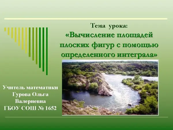 Урок изучения нового материала с ИКТ-технологиями по учебнику «Алгебра и начала анализа 10‒11» А.Г. Мордковича. В урок включен фрагмент компьютерного проекта учащихся на тему «Из истории интегрального исчисления».