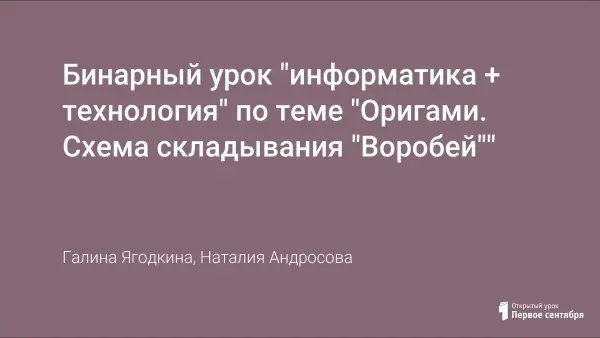 Бинарный урок "информатика + технология" по теме "Оригами. Схема складывания "Воробей""