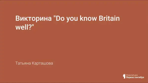 Правила заимствованы из известной телевизионной игры "Своя игра". Игра содержит страноведческий материал по теме «Great Britain», составлена на основе тематического материала учебника “English-6” О.В. Афанасьева, И.В. Михеева, для школ с углубленным изучением английского языка. Данная викторина может быть использована на уроках и во внеклассной работе. Цель: формировать у учащихся готовность к общению на английском языке и положительный настрой к дальнейшему его изучению.