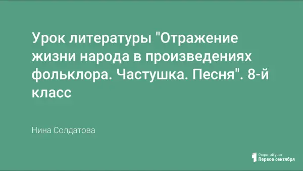 Цель: продолжить работу с понятием «фольклор» и его малыми жанрами; изучить тему песен и частушек; показать связь песни и частушки; доказать, что песни и частушки – целостная система устного народного творчества.