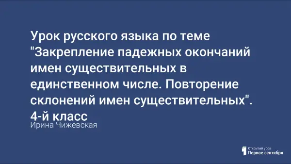 Урок обобщает, систематизирует и проверяет знания, умения и навыки по теме «Падежные окончания имен существительных в единственном числе. Склонение имен существительных»; развивает навыки устной и письменной речи, образное мышление, память, внимание, творческое мышление; прививает любовь к природе; воспитывает интерес к поэзии.
