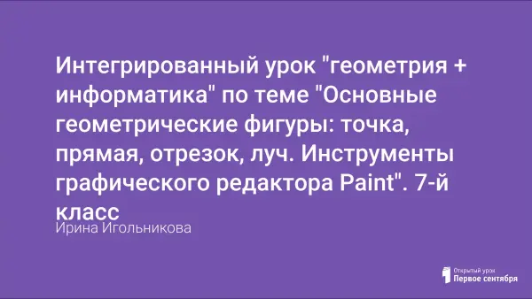 При проведении первых уроков геометрии целесообразно использовать умения учащихся работать в одной из самых популярных прикладных программ - графическом редакторе Paint. Достигаются две цели: изучение геометрии и закрепление навыков работы в редакторе Paint.