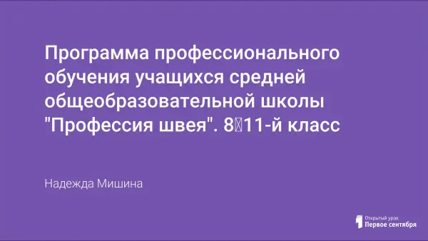 Цель обучения: формирование знаний, умений и навыков по профессии «швея» на широкой политехнической основе.