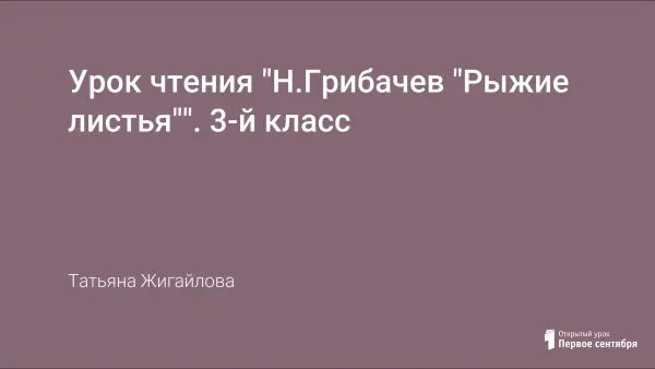 Урок проводился в норильской коррекционной школе-интернате VIII-го вида на методической неделе школы. На уроке учащиеся знакомятся с содержанием заключительной части сказки Н.Грибачева «Рыжие листья», совершенствуют технику выразительного чтения; уточняют и закрепляют знания о подготовке диких животных к зиме, о том, как они ее проводят. Большое внимание уделяется выразительному чтению.