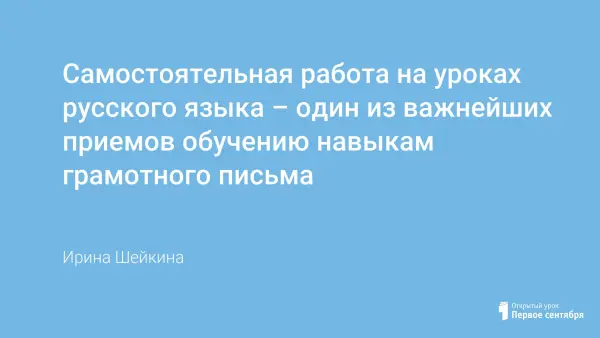Самостоятельная работа на уроках русского языка – один из важнейших приемов обучению навыкам грамотного письма