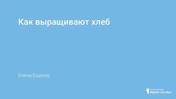 Урок дает детям представление о том, какой путь проходит зерно, чтобы стать хлебом в прежние времена и современное время. Цель урока: расширить представления детей о том, как растет хлеб, о значении хлеба, познакомить детей с процессом выращивания хлеба в разное время, обратить внимание на труд людей, слаженность, механизацию, воспитывать уважение к земледельцам, бережное отношение к хлебу.