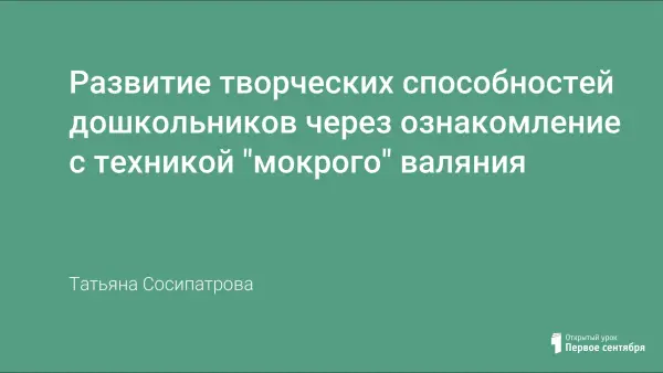 Содержание статьи раскрывает основы ознакомления старших дошкольников с техниками "мокрого" валяния: валяние шара, жгута, полотна. Подобный вид творческой деятельности способствует развитию эстетического вкуса, индивидуальных способностей и мелкой моторики дошкольников.