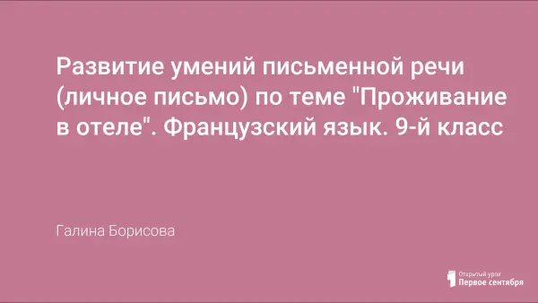 Урок учит писать личное письмо с опорой на образец. Цель: формирование познавательной активности, приобщение к работе со справочной литературой; расширение кругозора учащихся; развитие умения искать и выделять, сопоставлять информацию; изучение правил французского письма; развитие письменной речи.