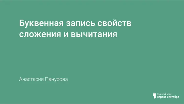 Цель урока: познакомить учащихся с буквенной записью свойств сложения и вычитания, совершенствовать вычислительные навыки; развитие речи, мышления, внимания.