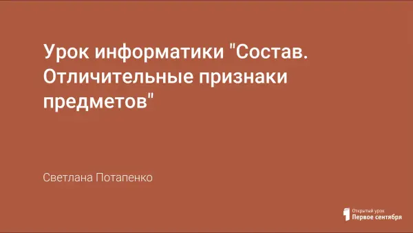 Урок информатики "Состав. Отличительные признаки предметов"