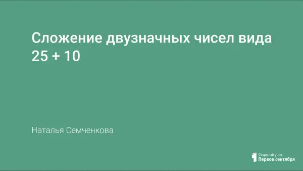 Урок объясняет новый материал. Детям предоставляется возможность самим найти удобный способ вычисления числовых выражений. Они используют счетные бруски, которые соответствуют десяткам и единицам, а также уже имеющиеся знания об однозначных и двузначных числах. На уроке ученики работают индивидуально (устный счет), в паре (со счетным материалом), в группе.