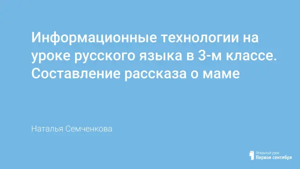 На уроке ребята учатся писать сочинение на заданную тему по плану и набирать текст сочинения на компьютере. Условно урок можно разделить на четыре части. В первой акцентируется внимание детей на роли матери в жизни каждого человека. Во второй части ставится учебная задача - написать сочинение и набрать его на компьютере. Третья часть - основная. Ребята пишут сочинение, набирая текст на компьютере. Четвёртая часть - желающие читают вслух свои сочинения.