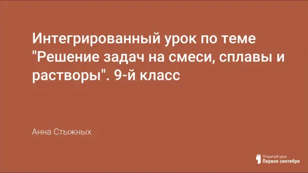 Цель урока: рассмотрение алгоритма решения задач на смеси: знакомство с приемами решения задач в математике и химии, определение взаимосвязи двух предметов. Задачи урока: реализация проекта «Науколаб», точнее создание и функционирование междисциплинарной лаборатории по изучению естественных наук.