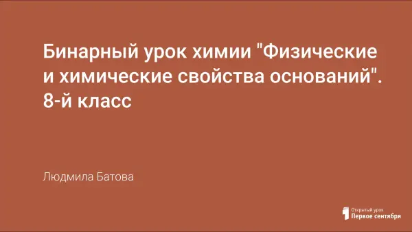 Цель урока: развитие навыков исследовательской работы, умений работать в группах, устанавливать причинно-следственные связи, уметь обобщать. Актуализирует знания учащихся о физических и химических свойствах оснований. Презентация представляет материал как систему ярких образов, наполненных структурированной информацией в алгоритмическом порядке.