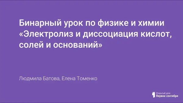 Бинарный урок по физике и химии «Электролиз и диссоциация кислот, солей и оснований»