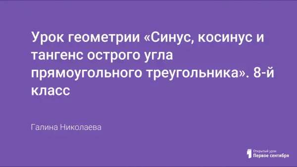 Это урок изучения нового материала, но построен урок целиком на решении задач. От известных задач учитель незаметно подводит учащихся к новым задачам, для решения которых понадобились новые понятия «синус», «косинус» и «тангенс». Цели урока: ввести понятия синуса, косинуса и тангенса острого угла прямоугольного треугольника; показать, как используются синус, косинус и тангенс при решении задач.