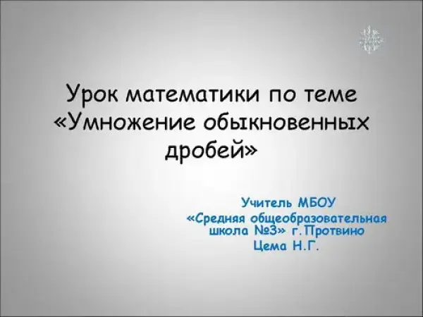 Урок математики в 6-м классе представляет собой закрепление изученного материала по темам "Умножение дробей", "Нахождение дроби от числа". В урок включены упражнения на развитие математической речи учащихся, наблюдательности, самостоятельности мышления, тест. Самостоятельная работа проводится в форме игры. Сопровождается презентацией.