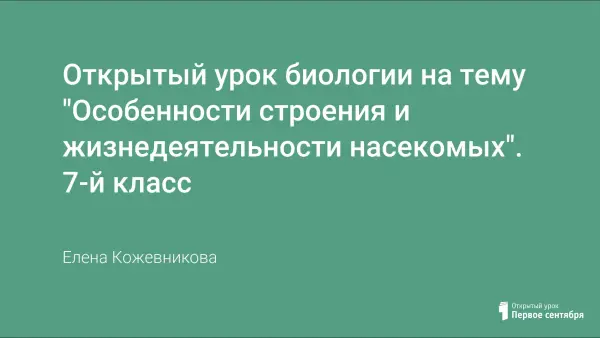 На уроке учащиеся выясняют, какое значение имеют насекомые в природе и жизни человека, изучают особенности строения и жизнедеятельность насекомых, знакомятся с их разнообразием. У детей развиваются внимание, память, мышление, речь, взаимовыручка. Формируется чувство прекрасного, бережное отношение к насекомым.