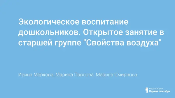 Экологическое воспитание дошкольников. Открытое занятие в старшей группе "Свойства воздуха"