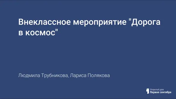 Внеклассное мероприятие рассмотривает основные этапы развития космонавтики, расширяет представления учащихся о первых шагах в космосе, развивает у учащихся активну жизненную позицию. В мероприятии задействованы учащиеся 7–10-х классов. Форма проведения – пресс-конференция. В ходе мероприятия прослеживается межпредметная связь с физикой, биологией, медициной.